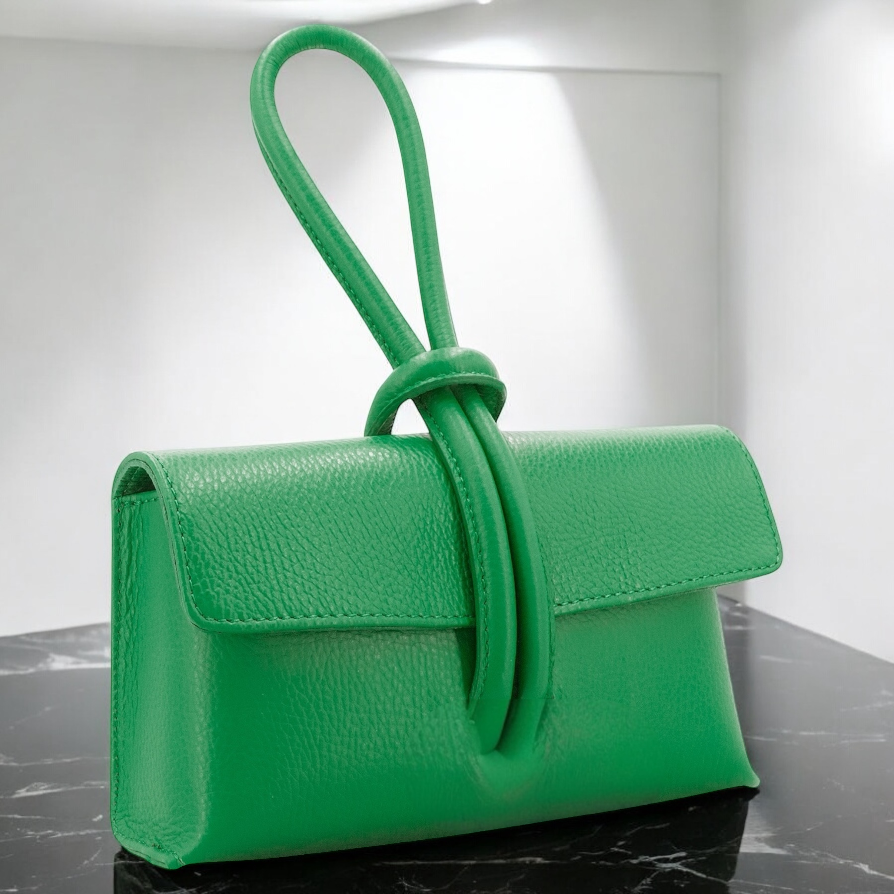 £49.00 Add to basketGreen Leather Top knot bag with long strap