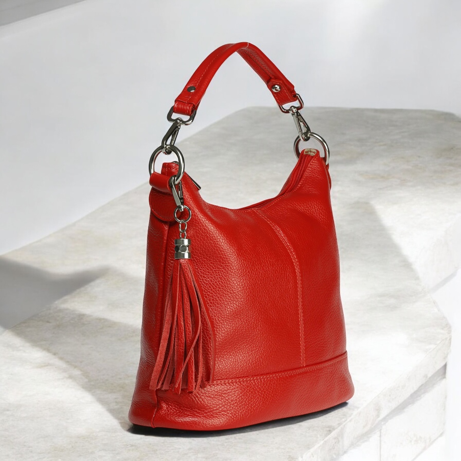 £49.00 Add to basketRed Italian leather bucket bag with tassel