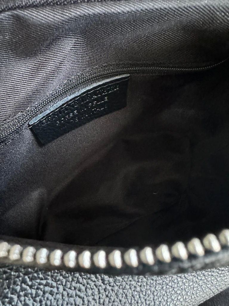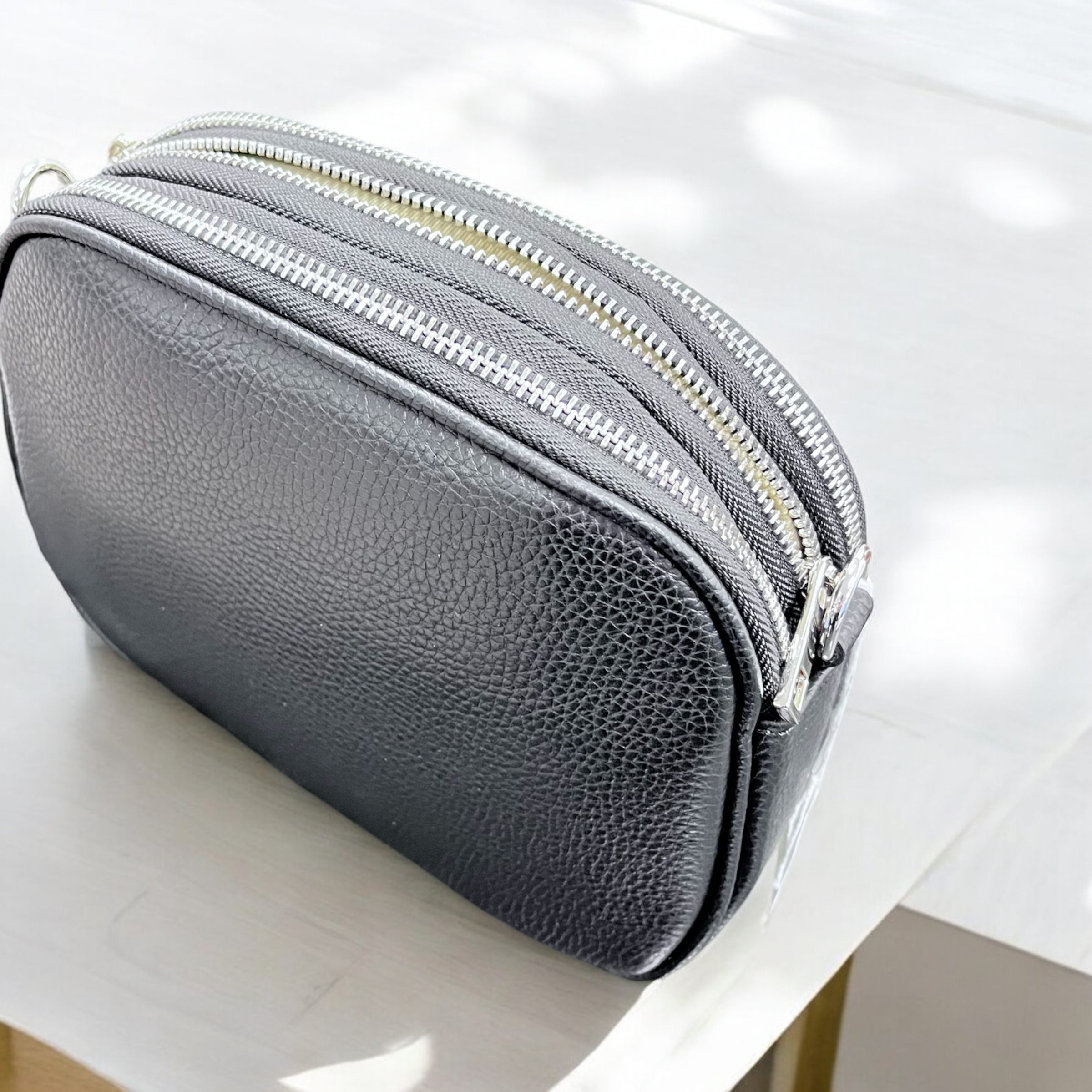 Small cross-body bag / Silver zipper closing / Pebbled Italian 100% leather / Lined interior