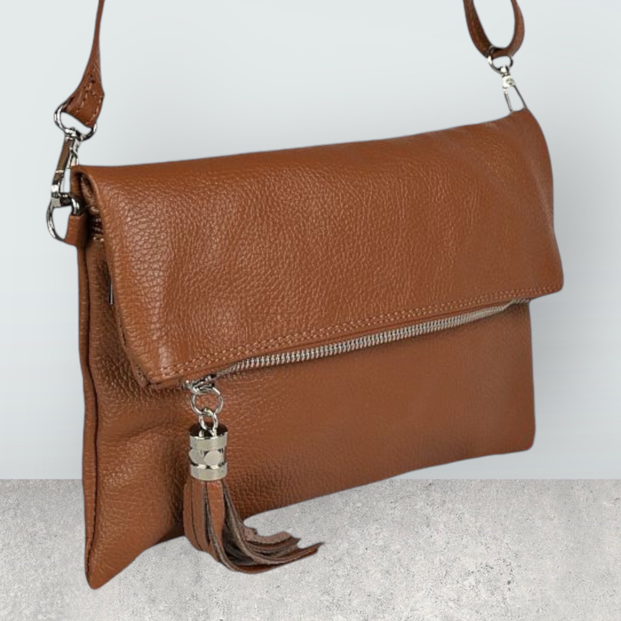 All bags are real leather & come with a matching strap.