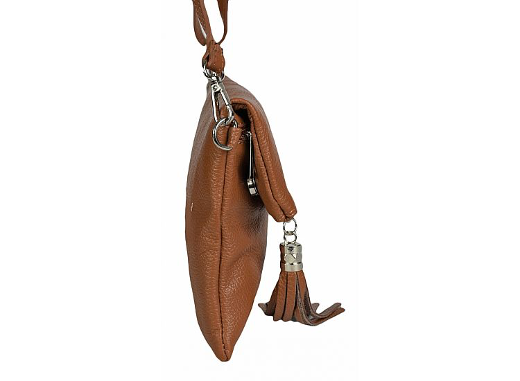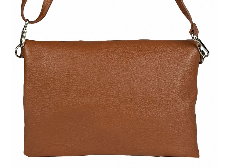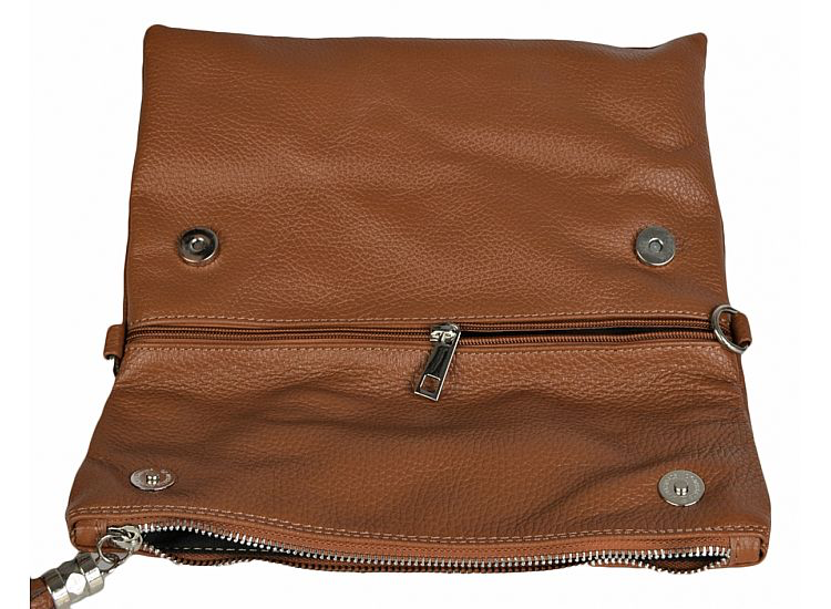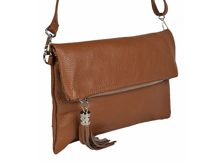 Brown Foldover Leather Clutch with long strap
