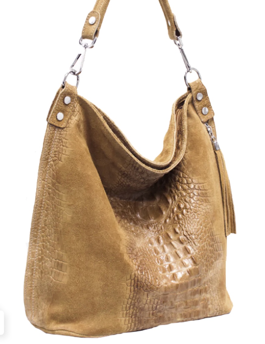 Featuring a tassel detail, and a top grab handle which allows the bag to be handheld, or if you prefer it can be on the shoulder or across body using the removable strap. All hardware is silver colour