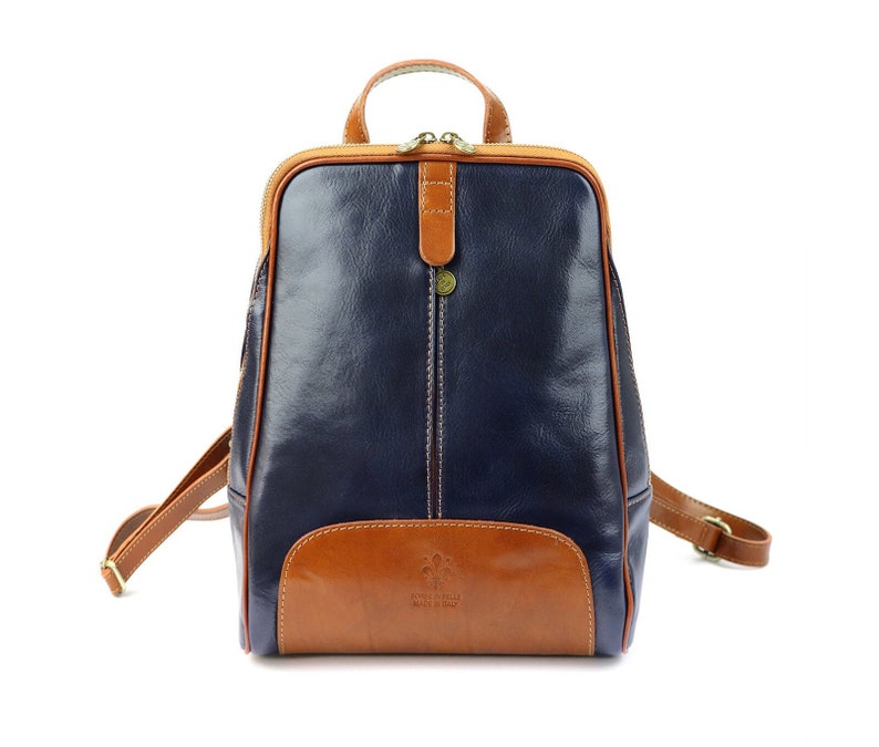 The elegant Italian backpack is made from the highest quality smooth natural leather. This handmade backpack, crafted from genuine leather, has a subtle shine and is highly resistant to damage. Thanks to its interesting shape, this leather backpack is ideal for various situations, making it the perfect everyday backpack. It is perfect for anyone who appreciate comfort and ease of use.