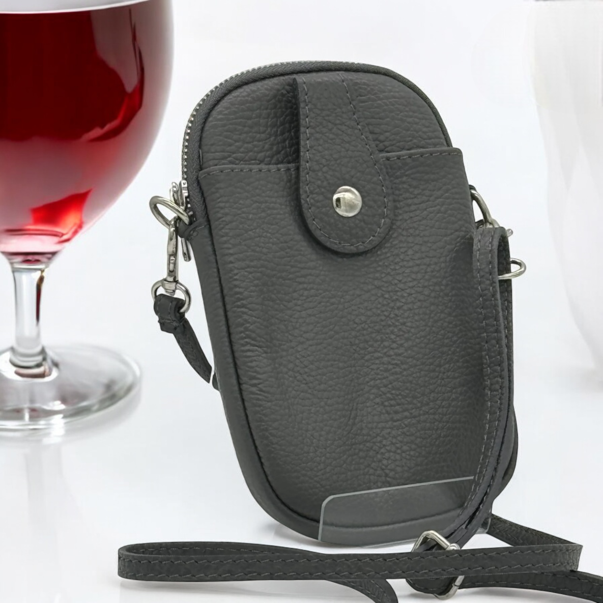 Be the first to review “Dark Grey Leather phone pouch with adjustable strap”