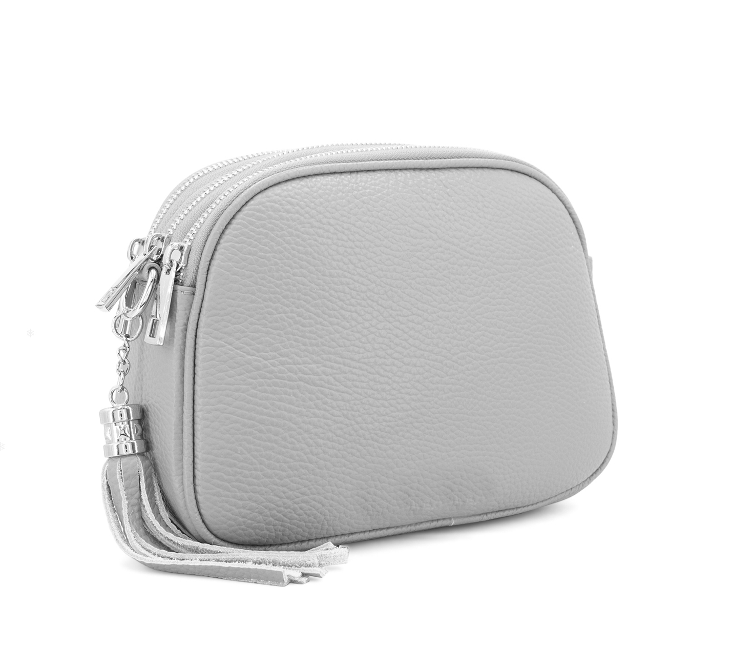 Small cross-body bag / Silver zipper closing / Pebbled Italian 100% leather / Lined interior
