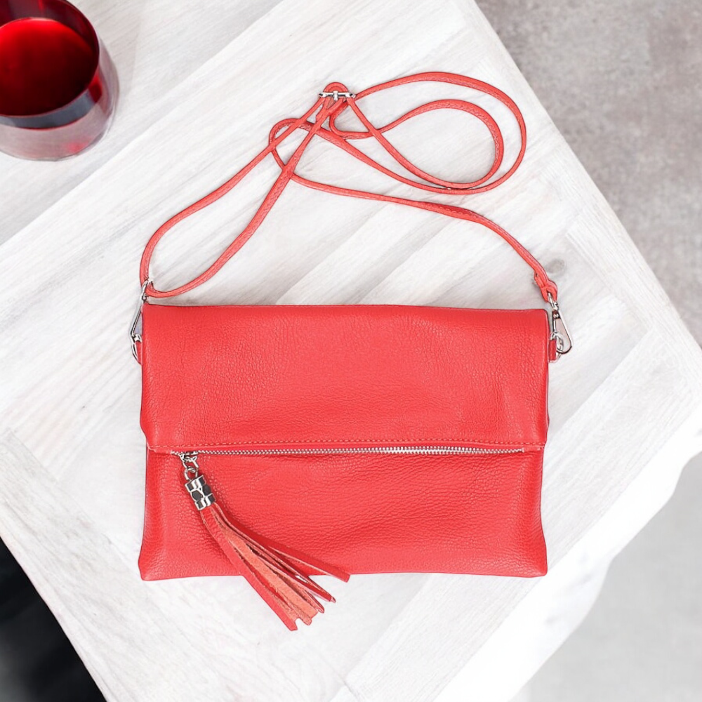 All bags are real leather & come with a matching strap.