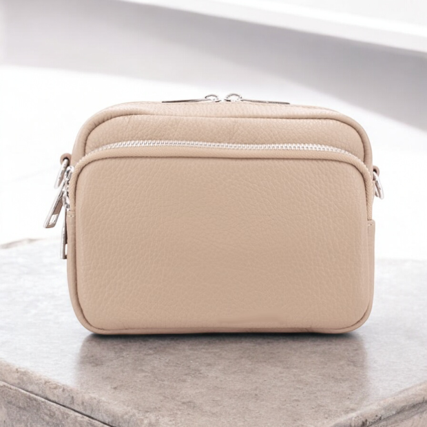Sleek small cross-body style in Italian leather with silver tone fittings  This Elegant Leather Bag is a practical choice for wearing around town. A lovely choice of bag that is versatile to wear with a wide array of clothing. A delightful choice of bag.