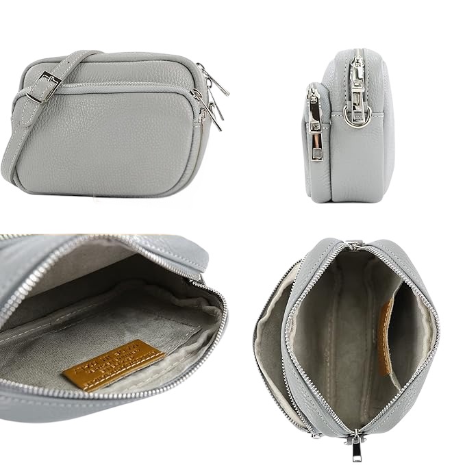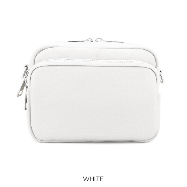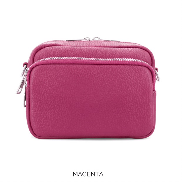 Sleek small cross-body style in Italian leather with silver tone fittings This Elegant Leather Bag is a practical choice for wearing around town. A lovely choice of bag that is versatile to wear with a wide array of clothing. A delightful choice of bag.