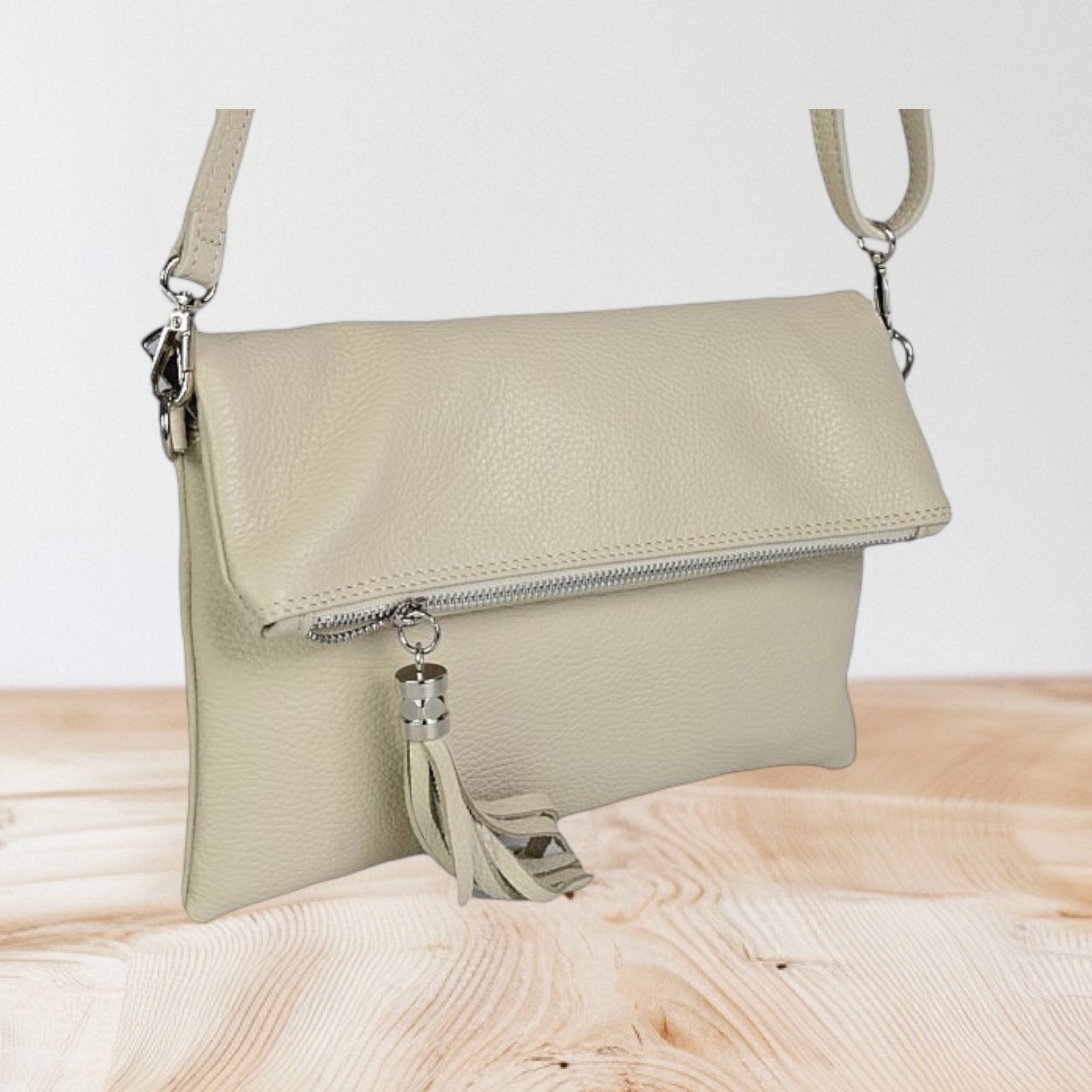 £39.00 Add to basketBeige Foldover Leather Clutch with long strap